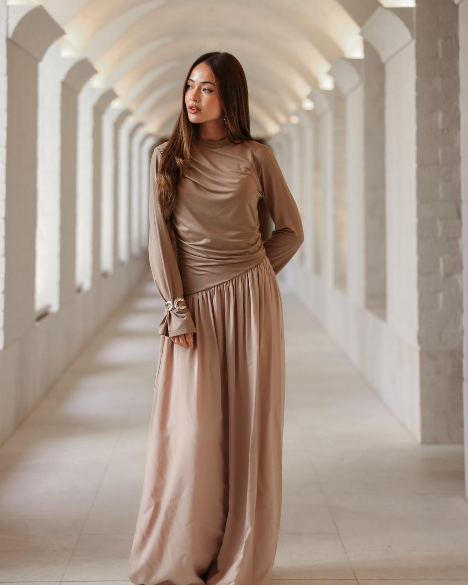 The graceful drape of the fabric enhances movement, creating an elegant silhouette that flatters all body types. Designed for versatility, the Monochrome Dress seamlessly transitions from day to evening wear, making it an essential piece for those who appreciate refined style. Whether you’re dressing up for a special occasion or embracing effortless everyday elegance, this dress ensures you look and feel your best.