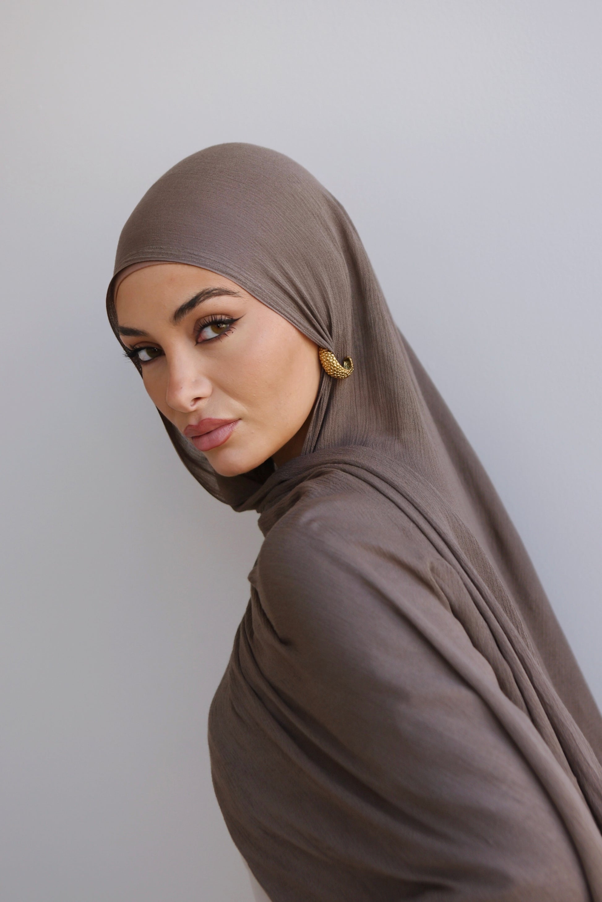 Crafted from soft solid rayon, this hijab offers the perfect balance of comfort and elegance. With a generous size of 185 x 85 cm, it provides versatile styling options—whether draped effortlessly or wrapped neatly. The lightweight, breathable fabric makes it ideal for everyday wear while ensuring full coverage. Finished with subtle raw edges, this piece adds a timeless touch to your modest wardrobe.