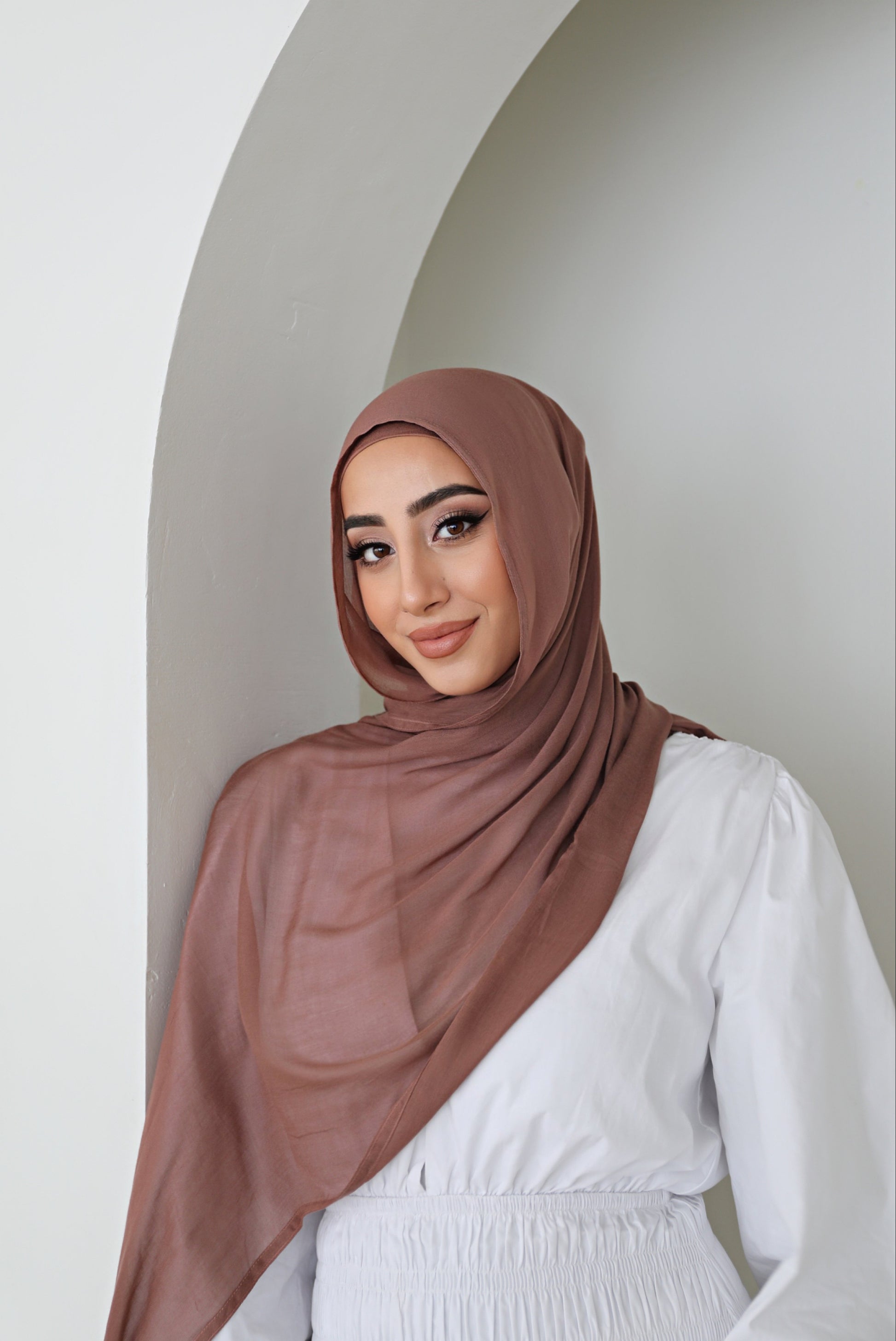 This design is made from custom dyed modal sets. Incredibly light weight and breathable fabric making sure its easy to style. Hijab features a double stitched frame.